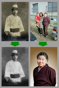- 古くてうすくなった白黒をメリハリ付けた白黒やカラーに復元